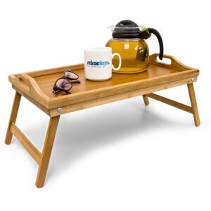 This bamboo breakfast tray gives you portable space for anything you might need for breakfast and allows you to enjoy it wherever you want! You can even fold in the legs and use it as a normal serving tray. Depending on the size of your dishes, the tray can fit approximately one large and one small plate and two glasses or cups. When you unfold the legs you can enjoy breakfast without the weight of the tray on your legs. It can stand sturdily on soft surfaces and gives you plenty of room to move around. Surprise your loved one with a cosy and romantic breakfast in bed! Product Details • Table height with legs extended: approx. 21.5 cm; Height folded: approx. 6.5 cm • Size outer tablet surface: 50 x 30 cm Inner surface: 47 x 27 cm • Material: bamboo Tray surface: Wood (MDF) • Colour: natural brown • Weight: 1 kg • 2x Bamboo bed tray Sofa Table and Bed Tray for Increased Comfort • 2 handles for secure transportation • Space-saving with folding legs • Multi-purpose as bed tray or