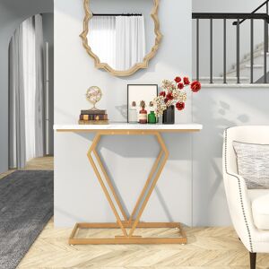 Transform your home with the luxurious and stylish white marble console table! Discover the perfect balance of elegance and modern appeal with its stunning geometric golden frame. This eye-catching table will elevate your decoration, whether you use it to showcase your favorite decorative pieces or keep your everyday essentials organized. Built to last, the thickened waterproof tabletop and rustproof coated metal frame ensure durability and longevity. Say goodbye to wobbly furniture with the wide stable base and adjustable foot pads. With easy assembly and a sleek, low-maintenance surface, this table is a must-have for any stylish home. Get yours today and add a touch of glamour to your space! Fairmont Park