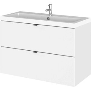 Hudson Reed's Fusion collection of bathroom furniture has been cleverly-designed so that it can be installed stand-alone or as part of a longer fitted run. The smart features of Fusion vanity units don't end there though - they are highly-customisable with multiple colours, basin options, and handle designs to choose from, allowing the creation of something completely unique. Features and Benefits: Smart wall-hung vanity unit design - can be used stand-alone or compatible with other Fusion furniture to created a fitted run Classic gloss white finish - a universal shade suitable for any bathroom Includes hard-wearing ceramic basin with 1 tap hole and overflow 2-drawer configuration, featuring soft-closing action for premium feel Supplied with minimalist chrome rear fix finger pull handles (30mm centres) as standard Cabinet carcass manufactured from 16mm MFC with 18mm MDF fascias (door/drawer fronts) Vanity unit supplied rigid - no assembly required on the carcass/cabinet Unit includes