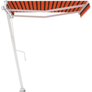 Create a nice and cool place in your outdoor spaces with this retractable awning! Built with rust-resistant powder-coated aluminium frame, this outdoor awning is lightweight yet sturdy. The patio awning's fabric is made of high-density polyester with PU coating, which is UV and water-resistant. Additionally, the angle and height can be adjusted to meet your specific needs. You can open and retract the freestanding awning smoothly with the long hand crank. The sturdy base can be rotated 360 degrees, providing maximum adjustment needs. Colour: Orange and brown Frame colour: White Material: Powder-coated aluminium, 100% polyester fabric with PU coating Overall size: 600 x 300 cm (W x H) Post size: 600 x 245 cm (W x H) Assembly required: Yes SKU: 3069600 Children should be supervised to ensure that they do not play with the appliance.Keep children away from the assembly area.Attention: Reading the instructions carefully before use and keep it for further reference. EU responsible party