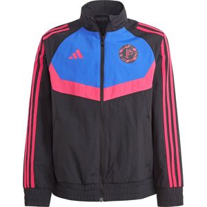Ready for action.The vibrant colours on the front of this juniors adidas football jacket take inspiration from Paul Pogbs energetic performances and off-field style.Its smooth, woven fabric and loose fit will make it a comfortable wear when youre out and about.Moisture-absorbing AEROREADY means you could just as easily take it onto the pitch.Made with a series of recycled materials, and at least 70% recycled content, this product represents just one of our solutions to help end plastic waste.FEATURES:-Regular fit.-Full zip with stand-up collar.-100% recycled nylon plain weave.-Mesh lining.-Front pockets.-Elastic cuffs and hem.-MADE IN PART W RECYCLED MATERIALS.