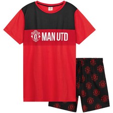 Kick back and relax with these officially licensed Man United men's pyjamas that combine style with comfort and are made with material that is soft and breathable. The set features a crewneck design and long bottoms with an elasticated waistband for enhanced comfort and 2 pockets. The perfect mens jammies set for wearing after work or on the weekends to watch the football, relax during warmer weather or get a comfy night's sleep. See images for more features and details. Manchester United FC Men's Pyjama Set in Red Size: 3XL