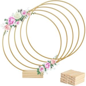 Material: Metal wreath center is made of strong and metal. Not easy to deform or break, the is glazed to prevent oxidation and rust, it is smooth and not fade. The wooden frame is made of natural wood with grooved sections that perfectly match the metal rings, providing better stability and functionality Package: Package contains gold metal rings and wooden centerpieces ( not included), perfect combination, enough quantity to decorate your wedding, engagement or party Dimensions: Craft metal ring is approximately 12 inches in diameter and 0.12 inches thick, wooden stand measures 2.75 x 1.38 x 0.52 inches/7 x 3.5 x 1.3 cm Metal hoop wedding table decorations can be used as part of DIY decorative crafts, garlands, dream catchers, lace plant stands, party supplies, anniversaries and baby shower decorations. Create a romantic and warm atmosphere and enjoy a wonderful just insert the metal ring into the wooden frame, no other tools required. You can wrap fabrics, ribbons, plants and other