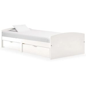 This wooden bed frame with drawers is a practical and decorative addition to any bedroom decor. This bed frame, made of solid pine wood, is exceedingly sturdy and durable. The sturdy slats offer the needed support and are also highly comfortable. The included 2 bed drawers provide ample storage space for storing folded clothes, toys, etc., keeping your room clean and tidy. The easy-glide wheels can work on both carpeted and wooden floors. With all these combined features, you can get a good night's sleep! Please note: The delivery includes a bed frame with a slatted base. The mattress is not included. You can check our shop for the matching mattresses. Rosalind Wheeler Colour: White