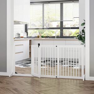 The foldable dog barrier from Pawhut is an easy and safe way to confine your pet while offering an attractive blend to your decor. The innovatory 3-panel design secured with sturdy hinges allows the gate to be folded down or create a free-standing setup. It is sturdy enough with two support feet and would not potentially damage your home. The stylish wooden dog gate freestanding will fit in any part of your home, great for doorways, hallways, entry and staircase. Archie & Oscar Finish: White