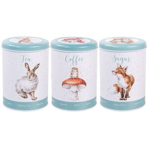 The Wrendale Designs Tea, Coffee and Sugar Set in Green are beautifully illustrated with 'The Country Set' design on every surface. Marked clearly with 'Tea, Coffee and Sugar' the smooth matte finish is complemented with light green lids and a matching green strip around the base. Suitable for use in any kitchen and great as a gift or as part of a collection. Size Each: 15.5(H) x 11(W) x 11(D)cm.