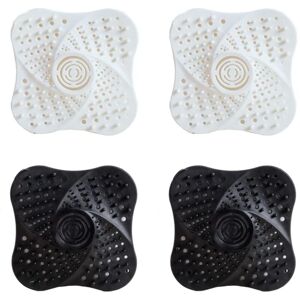 【Soft Material】: Our drain filter is made of high-quality silicone, which is soft, lightweight, not easy to deform, practical and durable. 【Easy to Use】: There are 4 suction cups at the bottom of each filter, which can be stably adsorbed, not easy to move, and can be adsorbed on smooth floors, not suitable for dull or uneven surfaces. 【Uses】: Ideal for bathroom drains, kitchen sinks, bathroom sinks, bathtub drains, showers, bidets, toilets, sinks, etc. It is easy to catch food residue, hair and other waste when draining. 【Package Included】: You will receive 2 white and 2 black anti-clogging sink pads, enough for your daily use. The drain holes in the drain cover are clean, leak-proof, and drain very quickly. You can use it with confidence.