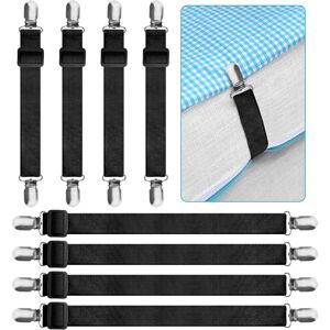 High-quality clip closure: The stainless steel clip is durable and rust-proof, and the internal plastic gasket can keep the fabric intact without damaging it. Package includes: 8 high-quality adjustable sheet holders, perfect for sofa covers, duvets, mattress protectors, sheets, camping, tablecloths, ironing skateboard covers and more. 【Adjustable Sheet Tightener】-The elastic sheet holder is adjustable from 35 cm to 100 cm, which can meet your different needs, such as: bed sheets, mattress covers, tablecloths, ironing board covers, blankets, etc. Let the sheets stay in place all night long. Easy to install and use: No tools needed, just hold the mattress and attach the clips to the edge of the sheet. 【RISK-FREE PURCHASE GUARANTEE】 - If there are any problems with our products or they do not meet your expectations, you can ask for a refund or get new items immediately.