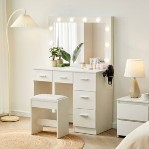 Specifications:Worktop: 95x45cm (WxD)Height to worktop: 75cmTotal height: 140cmMirror dimensions: 76x57cmSize of drawer 1: 23.2x33.8x12.1cmDrawer size 2: 23.7x33.8x9.1cmSize of the stool: 38x24x45cmMaterial: MDFColour temperature: 3000-7000KDelivery:1 x dressing table (delivered in two packages)1 x stool1 x instruction manual1 x accessoriesNotice:- Please note that when viewing online images of items, the colours on your home monitor may differ from the original fab colours.- The size data were measured by hand, they have a manual deviation of 1-2 cm. Latitude Run