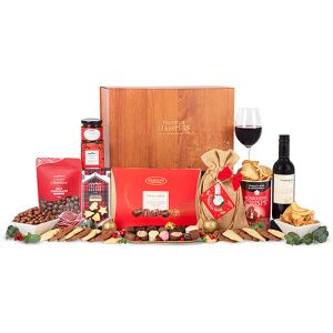 A beautiful Luxury Gift Box filled with luxurious favourites, perfect for everyone. With everything from festive shortbread shapes, artisan chocolates, exquisite red wine and tomato, basil and mozzarella crisps - this hamper is guaranteed to delight. Send our Luxury Gift Hamper to someone special this holiday, or treat yourself! Included Ventopuro Merlot Fine Wine 37.5cl Yorkshire Tomato, Basil and Mozzarella Crisps 95g Valley Bakery Festive Shortbread Shapes Hessian Santa Sack Chocolate Chip Biscuits 125g Valley Preserves Spicy Tomato and Sticky Onion Chutney 100g Valley Chocolate Chocolate Raisins Excelcium Luxury Pralines 180g Valley Breakfast Tea 20g Official Prestige Hampers Presentation Box