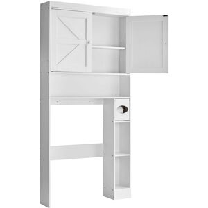 Bathroom Space-Saving Storage Cabinet This storage cabinet is designed to fit above standard toilets, optimizing vertical space in your bathroom. Constructed from durable particle board and MDF, it can hold up to 66 lbs. It includes an anti-tip kit for added safety, multiple storage tiers, and adjustable shelving for flexible organization. Its simple and versatile design complements a variety of interior styles. Compact Design for Efficient Use of Space Customizable Shelving Options Layered Storage Solution Constructed with long-lasting and sturdy materials, this product is designed to provide reliable performance and withstand daily use. Minimalist and Stylish Appearance Key Features Efficient Use of Space: Designed to fit seamlessly above standard toilets, this storage cabinet measures 67.44 x 32.09 x 7.68 in / 1713 x 815 x 195 mm. Its tall and narrow design optimizes floor space while offering a sleek and contemporary appearance. Customizable Storage: Featuring a removable and