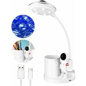 【4 IN 1 Multifunctional Desk Lamp】 Led table lamp is equipped with pen holder, static space projection and Astronaut doll with pen holder. Can also be used as a projection lamp, pen holder and night lamp. 【Levelless Dimmable Desk Lamp】Different from others with 3 brightness levels in the market, the function of levelless dimmable meets your brightness requirements, give you and your child/friends a better working environment. lighting. 【2000mAh USB Rechargeable】Rechargeable table lamp with built-in high capacity battery, provides up to 10 hours working time at maximum brightness. Charging time is 3-4 hours, indicator turns off when fully loaded. 【Eye Protection】Girl desk lamp is made of high quality ABS and PP materials, the light color temperature is natural white light, fully protect your eyes, provide you with a healthy lighting environment and comfortable. 【Flexible and Creative Gooseneck】The lighting angle of this wireless led desk lamp can be adjusted freely, and the projection