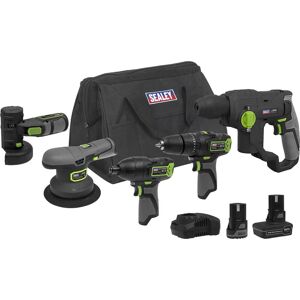 Part of the SV10.8 Series powered by fast charging high output lithium-ion batteries, designed to make everyday tasks quick and easy. Quality, stylish and lightweight tools, powered by one interchangeable battery. Ergonomic housings with soft grip. Supplied with fast charge mains charger and outer fabric bag. Features & Benefits: • Part of the SV10.8 Series powered by fast charging high output lithium-ion batteries, designed to make everyday tasks quick and easy. • Package includes: • Model No. - Description • CP108VMTBO - 10.8V SV10.8 Series Multi-Tool - Body Only • CP108VRSBO - 10.8V SV10.8 Series Cordless Reciprocating Saw - Body Only • CP108VDDBO - 10.8V SV10.8 Series Ø10mm Cordless Combi Drill - Body Only • CP108VCIWBO - 10.8V SV10.8 Series 3/8"Sq Drive Cordless Impact Wrench - Body Only • CP108VCSBO - 10.8V SV10.8 Series Ø85mm Cordless Circular Saw - Body Only • CP108VBP - 10.8V 2Ah SV10.8 Series Lithium-ion Power Tool Battery • CP108VBP4 - 10.8V 4Ah SV10.8 Series Lithium-ion Power Tool Battery • CP108VMC - 10.8V SV10.8 Series Fast Charge Lithium-ion Battery Charger • CP1200CB - Canvas Tool Storage Bag • Model No. CP108VCOMBO8 Specifications: Model No CP108VCOMBO8 Brand: Sealey Contents: CP108VMTBO - Body Only, CP108VRSBO - Body Only, CP108VDDBO - Body Only, CP108VCIWBO - Body Only, CP108VCSBO - Body Only, CP108VBP, CP108VBP4, CP108VMC, CP1200CB
