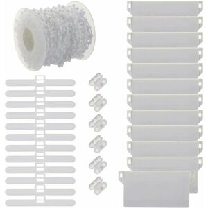 Usage: Repair or replace your 89mm/3.5in vertical curtain in living room, bedroom, bathroom, etc. Easy to use: perfect for adding weight to the awning and keeping it in a straight line. Material: plastic; Chain length: 10m / 32.8ft; Adjustment: 89 mm width of the vertical blind slat. Contents: The kit consists of 31 pieces of replacement accessories in total. Includes 12 pieces of vertical blind hook 12 pieces of blind weights 1 roll of 10m chain 6 pieces of blind ball chain connectors. Note: The kit only fits 89mm vertical slats. Please confirm the specifications of the vertical blind before purchasing. Product description Item descriptions: -Use: repair or replace your 89 vertical curtain mm / 3.5 inches in living room, bedroom, bathroom, etc. -Easy to use: perfect for adding weight to the awning and keeping it in a straight line. -Material: plastic; Chain length: 10m / 32.8ft; Adjustment: 89 mm width of the vertical blind slat. -Package: The kit consists of 31 pieces of replacement