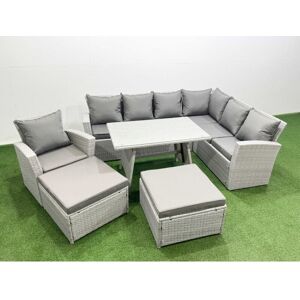 This patio corner sofa set can be used both indoors and Outdoor, with high quality PE rattan and durable galvanized steel construction for sturdiness and long lasting. Outdoor garden furniture can also be placed on the patio or balcony, The design of this rattan furniture is a perfect blend of country chic and modern minimalism, adding an elegant touch to your house. Set dimensions: 1 x 3 Seater sofa with two arm : 170L x 69W x 79H cm 1 x 3 Seater sofa with single arm: 160L x 69W x 79H cm 1 x Rectangular Dining Table :110L x 70W x 70H cm 1 x Big Footstool :65L x 65W x 34H cm 2 x Small fully assembled footstools 40L x 40W x 34H cm Light Grey Mixed rattan with dark grey fabric .Color may vary due to light or monitor .we are unable to return the item due to this problem .Please consult before purchase if you have requirment on color saturation. Items Comes Flat Packed And Easy to Assemble, Sturdy Galvanized Steel Tube Metal Frames With Powder Coating To Prevent Rust. Ergonomic High Back And Declining Design For Extra Comfort. Flat PE Rattan Completely Made By Hand, 5mm Thick transparent Tempered Glass With Sucker On Surface To Prevent Sliding8 CM Thick Seat Cushion With Soft Back Cushion provide You with More Comfort. Low Maintenance ,Removable Cushion Cover And Easy To Move Different Place. Pls Keep the Cushion Indoor Or Put on With Rain Cover When Not In Use .Put on Furniture With Rain Cover If Not Use For Long Time .Factory Direct Sale Guarantee The Quality And After Sale Service. This item is for kerbeside delivery , we can't deliver to your room . WARRANTY&SUPPORT: Though we have nearly 100% checked before shipment , but as this item is 100% handmade so If you have any issues of assembly, missing parts, damaged or other problems of product quality of this outdoor rattan furniture set, please feel free to contact us, and our after-sales team will respond within 24 hours and offer you the most perfect and powerful solutions. Fimous 9 Seater Garden Outdoor Rattan Furniture Set Dining Table Sets in Light Grey