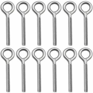 -Pack of 12 M8 eye bolts, each with a total length of about 95mm, and the threaded rod length is 59mm. -Our bolts are made of high quality 304 stainless steel, rust-proof and durable. -Whether used in equipment or at home, it is an essential material in a toolbox.