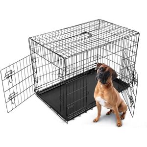 " Product Features: * High quality durable metal dog cage with movable carry handle. * Black powder coated to stay rust free. * 2 Doors for easy access/exit with heavy duty hook latches on each door way. * Folds flat for ease of storage and transportation. * Plastic removable tray for easy cleaning. * Packed with brand new carton box. Product Specification: * Model no.: FH-PT05; * Color: Black; * Material: Metal frame with plastic tray; * 42" cage: 107cm(42")L X 75.5cm(29.7")H x 69cm(27")W. Please note sizes are approximate and should allow for manufacturing tolerances. * Door size:Big door:51.5cm(H)*56.5cm(W);Small door:51.5cm(H)*51.5cm(W); * Wire Diameter(mm):4.0/3.6/2.6; * Carton Size: 1095X710X100MM; * Weight: - N.W.: 9.7KGS; - G.W.: 10.8KGS; Customer Notice: * Please choose correct size cage for your pet. * It should be large enough to enable pet to stand and turn around. * Please note there is nothing more important than keep your pet feels safe, happy and secure. * An anxious