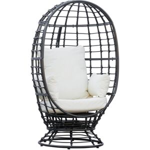 Relax in optimal comfort with this outdoor standing egg chair from Outsunny! This rattan garden chair with a rope woven hollow-out design is like a cosy bird-nest retreat. 20cm thickened cushion and a separate head pillow offer luxurious comfort. A steel frame means a strong, supportive core, whilst the outer plastic rattan wicker offers a stylish and protective top. Complete with a side cup holder for keeping drink within reach.