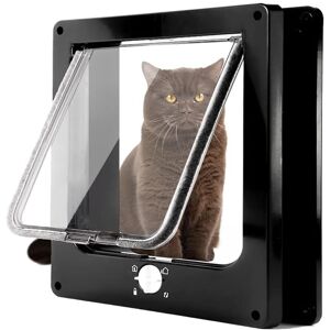 【4-Way Lock】Four modes (in only, out only, in and out, closed) can be easily controlled by the button on the door. 【Pet Body Size】5.9 inches (15 cm) wide * 6.1 inches (15.5 cm) high, suitable for cats whose waist circumference is less than 16.1 inches (41 cm) to easily pass through the cat flap. 【Slient & Freedom】The magnet and non-direct contact brush can reduce the noise caused by the pet entering and exiting. The transparent door panel ensures that pets can observe the environment in & out at any time safely. 【Easy Mounting】Can be installed on a wall/wooden/Upvc door. The installation diagram on the package shows how to install it easily. 【Quality and Quality Guaranteed: The beautiful and durable ABS material will not be damaged by the influence of daily use.