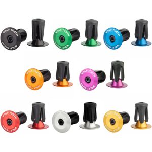 Add a flash of color to your handlebars. Alloy Bar End Plugs are precision engineered and machined using lightweight, durable 6061-T6 aluminum. They are compatible with mountain and road bike handlebars thanks to an expanding wedge that makes a secure fit for most inner bar diameters. Available in a variety of anodized color options that match Wolf Tooth headsets, stem caps, seatpost clamps, bolts, and more. Compatibility:- Works with mountain and road bike handlebars. The expanding wedge makes a secure fit for most handlebar diameters.- Compatible with handlebars measuring 16 mm to 21.5 mm inner diameter.- Use 3 mm hex tool (not included) to secure bar end plugs. Tighten until snug, Do not overtighten.Specifications:- Weight: 17 g for set of two- Alloy plug diameter: 26.6mm- Compatible handlebar inner diameter range: 16 mm - 21.5mm- Material: 6061-T6 aluminum cap, black anodized 7075 aluminum bolt, glass-filled nylon expanding wedge