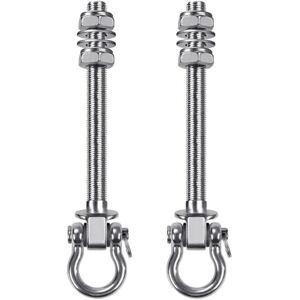 High-Quality Construction: These swing hangers are made of premium 304 stainless steel for durability. They feature an overall length of 8.27 inches, ensuring durability, rust resistance, and high corrosion resistance for safe and environmentally friendly use. Easy Installation: Our swing hangers come with all the necessary hardware for quick installation. Simply pre-drill a hole in the wood or steel beam, use the provided nuts to mount, and enjoy a secure installation, perfect for wood and steel . Flexible and Safe Design: These hangers are designed to support a 180° swing range, providing enhanced flexibility and safety. They are suitable for a variety of uses, ensuring reliable and break-resistant performance, suitable for indoor and outdoor applications. Versatile: Perfect for a variety of activities and equipment, including porch swings, hammock chairs, yoga swings, gymnastic rings, and more. Whether used in your home yard or gym, these hangers provide the support you need for