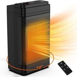 【Ceramic Heating Technology】This energy-saving fan heater uses a PTC ceramic heating element, which can heat up quickly in 2 seconds. It heats up faster than traditional heaters and is more energy-efficient. The energy-saving ceramic heater not only heats up quickly, it also has an adjustable digital thermostat that can adjust the temperature between 15° and 35°, easily meeting your needs. 【Energy-saving heating】The energy-saving fan heater has 3 modes and 3 power levels: natural cold air 4W, low-temperature warm air 850W and high-temperature warm air 1500W. When the set temperature is reached, the power is automatically reduced. The ceramic fan heater has a carrying handle on the back that allows you to quickly and easily place it anywhere. 【12H mute timer】This electric heater has a unique design, LED digital display, can be set to a 2-12 hour timer, with a 30 second countdown. Its size is 15*10.5*25.6cm, compact, easy to carry. Touch control for targeted heat. 56dB low noise