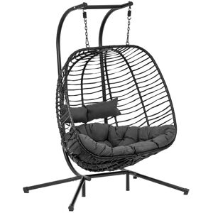 If a a comfortable and cosy ambiance is what you're after, the outdoor hanging chair provides ultimate relaxation within minutes. Equipped with a 8 cm thick, snug cushion, this hanging chair promises maximum comfort for relaxed moments in the garden, on the balcony, or in a cosy nook. The construction of the hanging chair withstands wind and weather: the cushion's material is waterproof, and the suspension and seat made of PE rattan resist fading sunlight over many seasons. Thanks to its sturdy iron base, the outdoor hanging chair supports a weight of up to 150 kg. This ensures safe use and gives you the freedom to enjoy your relaxed moments. Practical and compact in its design, the hanging egg chair allows for space-saving setups and quick disassembly. The foldable PE rattan seat ensures that you can easily store the hanging chair when it's not in use. Moreover, the hanging chair impresses primarily with its stylish design. Enhance your environment with this swinging chair, creating a refined and comfortable atmosphere. Or simply treat yourself to a haven of peace and relaxation with this hanging chair!