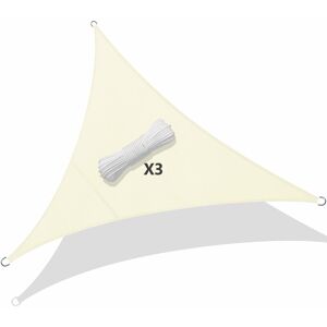 ADVANTAGES Waterproof and weather resistant Made of 100% polyester 160 g/m2 Easy to install UV protection DESCRIPTION CARACTÉRISTIQUES SPECIFICATIONS: Available sizes: 3x3x3m - 5x5x5m - 3x2m - 3x4m - 3x5m Available colors: gray, beige Material: 100% polyester 160 g/m2 Advice : All dimensions are approximate, with a tolerance of +/- 10cm. WHY CHOOSE VOUNOT? Fastening ropes are included, you can use ropes to install our shade sail easily and safely. Our waterproof triangular shade sail is made of 100% polyester fabric with thickness of 160g/m2 which is durable, safe and optimal for outdoor use. The sunscreen awning can block up to 95% of UV rays and provides better sun protection.The breathable design prevents heat build-up and is therefore cooler. The sail canopy is PU coating which helps preventing small rains. It is not recommended to use our shade sail during heavy rains or bad weathers. We suggest to tilt shade sail 20 to 40 degrees to get the maximum tension and let water runs