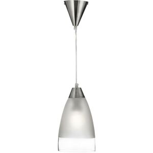 Specification Searchlight Metal And Glass - 1 Light Ceiling Pendant Chrome with Clear And Frosted Glass Shade, E27 Finish: Chrome IP Rating: IP20 Height (cm): 120 Diameter (cm): 15 No. of Lights: 1 Lamp Type: E27 Dimmable: Yes Wattage (max): 60 Weight (kg): 0.7 Class: 1 (Earthed) Bulb Included: No Description This pendant has a simple design which allows it to match and fit into any room. The fitting uses chrome together with both clear and frosted glass to create a unique mix and an elegant design. The glass allows the light to shine through, providing a generous light spread throughout the room.