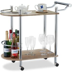 Are you looking for a most elegant way of serving food and drinks to your guests? Then this frosted glass side cart is just what you need! 2 Tiers provide plenty of storage space even for taller items. Bars in the front prevent them from falling. The tea station impresses with a most exceptional design - MDF panels with a Sonoma oak look on a chromed steel frame. The cart is equipped with a handle for pushing or pulling. The 4 castors with 2 brakes ensure a smooth and easy use. Kitchen Cart Details - H x W x D: app. 76 x 82 x 39 cm - Weight: app. 7 kg - Material: Chromed steel, MDF - Colour: Brown Mobile 2-Tier Kitchen Trolley - Compartments: app. 67 x 39 cm - Distance between tiers: app. 51 cm - Lower holder H: app. 16 cm - Top holder H: app. 2.5 cm Modern Tea Station - Storage space on 2 tiers - With 4 casters and 2 parking brakes - With handle for pushing or pulling - Stylish design with Sonoma oak finish - For kitchen, bar etc. Included in Delivery - 1 x Serving Cart in Pieces