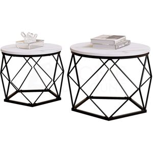 Home Discount - Brooklyn Round Nest of Tables Set of 2 mdf Wood Coffee Side End Table, Marble