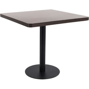 Create a romantic atmosphere with our elegant bistro table. The tabletop is made of MDF with wood grain pattern and is supported by a steel leg and base. It is easy to clean with just a damp cloth. Use it as a single piece in your interior, restaurant, coffee shop or bar. It is easy to assemble. Colour: Dark brown and black Material: MDF, steel Overall dimensions: 80 x 80 x 75 cm (L x W x H) Thickness of table top: 3.8 cm Numberofperson: 2 Assembly required: Yes