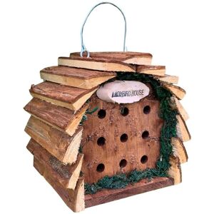 This rustic style ladybird house is ideal for attracting these beautiful insects to your garden as it provides them with the type of habitat they look for to nest. Made from rustic wood, it features a natural bark roof outer and nine holes at the front as entrance ways. Suitable for hanging from a tree or up on a garden wall, it includes a sturdy metal hanging hook which is naturally aged. The ladybird house looks good in any garden setting and makes the perfect gift for gardeners and nature-lovers alike. This lovely beneficial insect habitat measures 16cm x 16cm x 15cm and comes fully assembled. Ladybirds can help keep garden pests such as aphids under control * Rustic style ladybird habitat * Crafted from natural wood * Set of 2