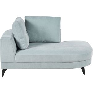 Chaise Lounge with Cushions. This modern chaise lounge adds a stylish touch to any living room. Upholstered in a chenille fabric, it is soft and durable. The chaise features sturdy black iron legs for stability and two backrest cushions with removable covers for easy cleaning. Its delicate light blue shade gives a touch of colour to any interior. The chaise looks great individually or as part of a corner sofa. Details: Product Type: Chaise Lounge Style: Modern General Color: Blue, Black Shade: Light Blue Material Type: Fabric Main Material: Chenille Additional Material: Iron Filling Material: Foam Material Composition: 100% Polyester Arm Style: Track Orientation: Left Hand Pattern: Solid Reclining: No Seat Construction: Pocket Springs Seat Foam Density: 30 kg/m3 Dimensions: Armrests Height: 64 cm Depth: 151 cm Seat Thickness: 17 cm Seat Height: 43 cm Width: 111 cm Height: 88 cm Seating Surface: 108x69 cm Weight: 51 kg Weight Capacity: 137 kg Offer Includes: 1 x Chaise Lounge, 2 x