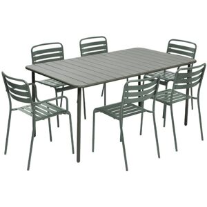 Product Highlights Garden table with slats and rounded edges Simple rainwater drainage Steel with anti-rust treatment This metal bistro set is perfect for your garden or balcony terrace. Its timeless design will blend in and adapt to any outdoor decor style. The Amelia bistro table and chairs are perfect for enjoying convivial moments with your loved ones. The Amelia garden set in steel is ideal for those who want a durable and attractive table. It features an anti-rust treatment, meaning it can be used outdoors without fear of damage from moisture or rain. The table and chairs also have charming slats and rounded edges. Finally, rainwater can easily escape through the slits. Steel: Electrophoretic treatment Table: L 160 x W 90 x H 72.5cm (19kg) 2x Armchairs: L 50.4 x W 53 x H 79.5cm (5kg) 4x Chairs: L 44 x W 52 x H 79cm (4kg)