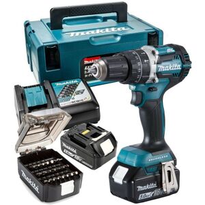 This Limited Edition Anniversary 18v LXT Combi Drill set is part of Makita's 50th Anniversary Specials Range Kit Includes:1 x DHP484 Brushless Combi Drill2 x 5.0ah Batteries1 x DC18RC Charger1 x B-68323 Bit Set1 x Makpac Case Model DHP484 is a Cordless Hammer Driver Drill powered by 18V Li-ion battery (sold separate). Featuring the Makita Brushless motor, precision engineered to be up to 50% more efficient than a comparative model. Without brushes in place to apply friction a Brushless motor can produce a greater measure of torque per weight. With more torque at your disposal less power is required for day to day use, adding to the motors efficiency and extending the products overall lifetime as maintenance becomes less of an issue. The DHP484 has been developed to succeed model DHP480. Features and Benefits: Brushless motor Electric brake 2 mechanical gears. Variable speed control by trigger Forward/reverse rotation LED job light Compact Overall Length of 182mm Keyless Chuck