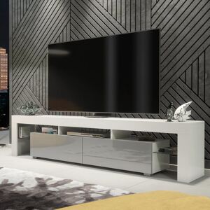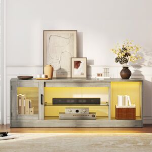 This stylish TV stand has interesting lighting features and can accommodate TVs up to 65". Its frame is made of engineered wood and features two clear glass shelves. There is also a special compartment in the center. In addition, the open shelves can be used to store media devices, DVDs, books or other items. Equipped with RGB LED lights, which can change the light color through different menus and automatically adjust to different colors, this TV stand will definitely become the focal point of your room. Metro Lane