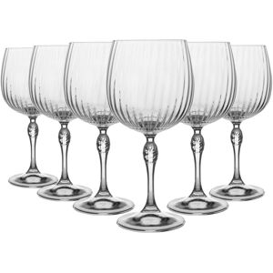 Add Art Deco opulence to your home bar or restaurant with the America '20s glassware collection from Bormioli Rocco. As the name suggests, the design of these glasses takes inspiration from classic 1920's America - the era of speakeasys, flappers and the Great Gatsby! The delicate ridges that encircle each vessel dance in the light to cast intricate reflections upon surrounding surfaces, combining with an elaborate scuplted stem to dazzle and delight their audience. Don't be fooled into thinking these glasses are all fashion and no function, however - Bormioli Rocco's special Star Glass construction provides long-lasting crystal clarity even after repeated washes, while the fine laser cut rim promises the purest taste of the delicious contents contained within. With a variety of vessels available for drinks of all shapes and sizes, the America '20s collection is sure to render any gathering a Roaring success! Bormioli Rocco America '20s Gin & Tonic Glasses - 745ml - Clear - Pack of 12