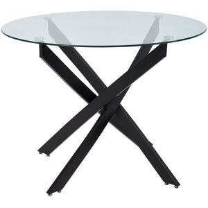 This glass-top dining table, embodying a modern industrial style, adds a bright and spacious feel to your dining area. The round design is elegant and space-saving, suitable for multiple people to sit around. The tabletop, made of high-quality tempered glass, features excellent transparency and durability, ensuring safety and reliability. The robust iron legs, treated with spraying, enhance corrosion and wear resistance while presenting a fashionable black appearance. It serves not only as an ideal kitchen dining table but also doubles up as a conference table or office computer desk, making it a versatile home furniture choice. 17 Stories Size: 75cm H x 100cm W x 100cm D