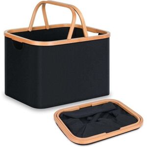 Large organizer: 44 x 33 x 30 cm (L x W x H), 43 liters capacity, perfect for daily family use. Foldable design: You just need to support the four bamboo strips and stick the Velcro fastener, unfold the capacity, and fold it up to save space. The basket is not only suitable as a laundry basket, but is also ideal for storing toys, blankets, books, etc. Portable and reliable: Convenient handling when climbing stairs thanks to two comfortable handles. Laundry basket with 4 bamboo support rods that make it stronger and more durable and stabilize it after unfolding. Durable and sturdy material: The laundry basket is made of very high-quality bamboo and fabric, is made of thicker fabric than other brands and will not tear or damage after extended use. The bamboo handle is carbonized to make it smooth and won't hurt your hands during use. Make life convenient: Never waste time sorting through dirty clothes or small items again. Enjoy the relaxed handling of our bamboo basket and free