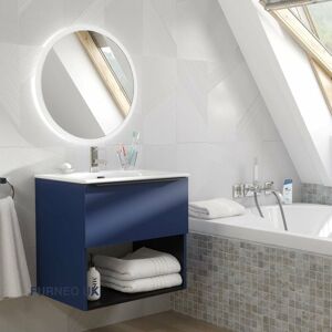 Bathroom vanity cabinet featuring a blueberry matt exterior finish, and a chrome handle. The cabinet is characterised by a single drawer with soft close runners, for your toiletries, and a lower open shelf for towels and other items. A modern basin is included with the product, however, please note that tap and waste is not included. Dimensions: (WxHxD): 60cm x 57cm x 45.6cm This is an assembled product that will require wall mounting. Picture instructions, and a supplementary written notice are included with the item and these should be looked over carefully, prior to attempting mounting. The set includes a fixing set to hang the unit on the wall, but this doesn't include wall plugs, you will need to purchase this separately in line with the wall type the item will be hung on.