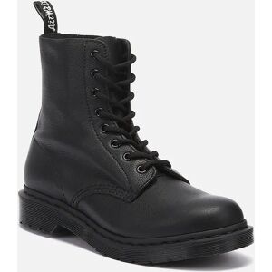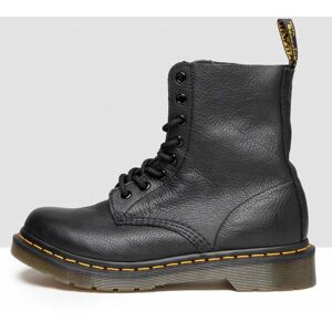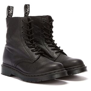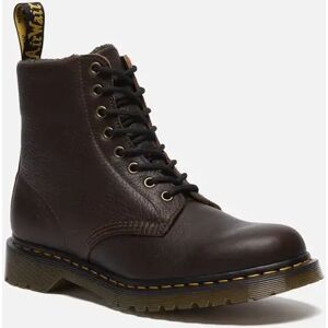 Women's Brown Dr. Martens 1460 Pascal Fur Lace-up Boots Designed With A Textured Waxed Leather Upper Featuring A Cream Fluffy Faux Fur Lining, Original 8-eyelet Silhouette, Yellow Stitching, And Branded Textile Heel Pull Tab. These Ladies' High-tops Are Constructed On The Iconic Goodyear Welt, Air-cushioned Rubber Sole.