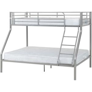 Upgrade your bedroom with the Tandi Triple Bunk Bed, a sleek and modern addition to any living space. Crafted with a durable metal frame, this space-saving triple bunk bed offers both style and functionality. Designed to accommodate a single bed on top and a double bed on the bottom, the Tandi maximizes sleeping capacity without compromising on aesthetics. Its clean lines and minimalist design complement a wide range of decor styles, making it a versatile choice for any room. This flat-pack marvel is delivered right to your doorstep, ensuring easy transportation and a hassle-free setup. While assembly is required, our straightforward instructions and included hardware make putting together the Tandi a breeze. Elevate your bedroom's style and maximize your space with this contemporary sleeping solution. Get yours today and enjoy a modern, comfortable sleeping experience that stands the test of time. Seconique Tandi Triple Sleeper Bunk Bed (Single top bunk / Double bottom bunk) in Metallic Silver