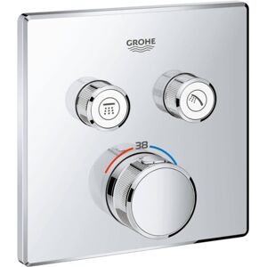 GENERAL DESCRIPTION The Grohtherm SmartControl concealed thermostat allows you to control your shower experience with ease. It features ergonomic push-button handling and a stylish design, making it a great addition to any modern bathroom. The innovative SmartControl technology lets you choose your spray source and adjust the water volume with a simple push-turn action. This thermostat can switch between head and hand showers or between shower and bath seamlessly. It includes GROHE TurboStat technology to prevent temperature fluctuations and a family-friendly SafeStop button to limit the maximum temperature to 38°C, with an optional SafeStop Plus limiter for added safety. TECHNICAL SPECIFICATIONS GROHE Rapido SmartBox 35 600/35 604 required for installation Metal wall escutcheon with GROHE FastFixation Retroactively adjustable by 6° GROHE Long-Life finish GROHE SmartControl for ON-OFF and volume adjustment Exchangeable symbols for easy use GROHE TurboStat compact cartridge GROHE