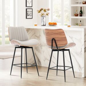 Bring modern elegance to your breakfast bar or café counter with this beautifully crafted swivel bar stool. Featuring a smooth 360-degree rotating seat upholstered in soft, easy-clean PU leather, and a curved walnut-effect back that adds warmth and texture. The padded seat and backrest offer excellent comfort, while the fixed-height black metal legs ensure strength and stability. Whether for morning coffee or evening drinks, this stool fits seamlessly into kitchens, cafés, or office break spaces.Available in three versatile shades – Cream, Black, and Brown – to suit any interior style. George Oliver Upholstery: Black