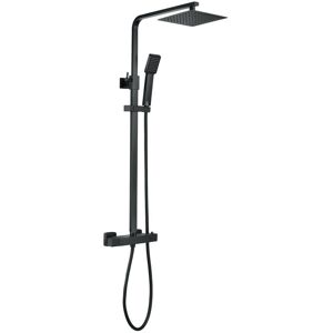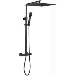 ENZO TWO OUTLET THERMOSTATIC SHOWER SET If you are after a more contemporary look and feel for your bathroom or ensuite, why not complement the look with this beautiful Enzo shower set with adjustable squared rigid riser rail and thermostatic valve? PRODUCT DETAILS Thermostatic bar shower kit, with dual rigid riser kit with square shower heads Adjustable height overhead shower Adjustable height and angle handset holder Latest ceramic disc technology Built-in anti-scald device with override function Style: Modern Finish: Matt Black Easy to clean rubber jets on shower heads Square thermostatic mixer valve with built-in diverter Built-in non-return valves 150mm between pipe inlet centres For more dimensions, please see technical drawing WORKING REQUIREMENTS Suitable for all plumbing systems. Minimum water pressure required - 0.5 bar, though we recommend min. of 1.0 bar for best performance. Please note: shower valve will not work efficiently on a gravity fed tank system, unless a