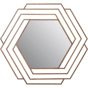 This wall mirror features a textured and sturdy metal frame in an antique gold finish. The layered hexagonal design contributes to its stylish aesthetic and makes it a distinctive geometric accent piece. This product will be shipped to your address with our premium delivery service to ensure you are fully satisfied with your purchase. As a result, this will slightly increase delivery time.