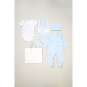 Celebrate the arrival their little one with this printed 6-piece set from Rock A Bye Baby Boutique. This magical bundle includes a printed bodysuit, footed trousers, bib and hat, ensuring they're stylish and snug. Complete with a memory book for an extra personal touch. This set is made from 100% cotton and is packaged elegantly in a mesh bag.