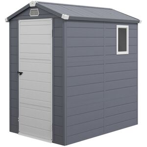 Keep garden equipment and outdoor essentials locked away securely with this Outsunny 4 x 3ft shed. An aluminium frame for a strong core, fitted with plastic wall panels: suitable for outdoor use. It comes with a lockable door, so it can be keep securely shut when you're not around. The two vents and a window bring fresh air and natural light inside. Garden tool shed comes with foundation so it stands level.- Spacious enough for storing all your outdoor tools, equipment and gardening gear; - Strong aluminium frame, with durable and protective plastic walls; - Lockable door for security; - Sloped roof helps prevent water build-up: prevents surface damage and rusting; - Two ventilation holes keep inside fresh. Window to allow natural light inside; - Galvanised foundation kit included for an even structure on the ground; - Assembly required;- Colour: Grey; - Material: Polypropylene body, Aluminium frame, Galvanised foundation kit; - Overall Dimension: 133L x 190W x 208Hcm; - Wall Height: 180cm; - Bottom Frame Size: 121W x 180Dcm (2.2㎡); - Interior Size: 117W x 177Dcm; - Single Door Size: 74W x 180Hcm; - Vents Size: 21W x 11Hcm; - Side Window Size: 35W x 48Hcm; - Snow Load Capacity: 20Kg/㎡; - Item Label: 845-410V03CG; Metro Lane