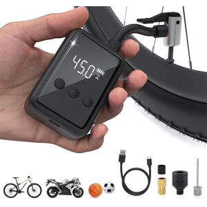 Ultra portable mini bike tire pump is super small, easy to carry, takes up less space in your backpack, you can even put it in your pocket. With it, you can inflate your bike tires anytime and anywhere, it is a must-have for bike cycling adventures. easy to inflate tires of bicycle, electric bike, mountain bike, motorcycle, soccer ball, basketball, football and so on. The portable bicycle air compressor automatically shut off when it reaches the preset value, ensuring safe use. universal for almost all types of bikes on the market, which can satisfy the needs of cycling enthusiasts, but also easy to share and help each other with cycling partners. Digital pressure gauge of small air compressor portable displays the inflated air pressure value in real time, easy to read digital format, you can monitor the air pressure of your tires at a glance and accurate inflation every time. color: Black Material: plastic+metal size: 7.5x5.1x3.4cm Package Contents: 1*Wireless Air Pump kit Only the